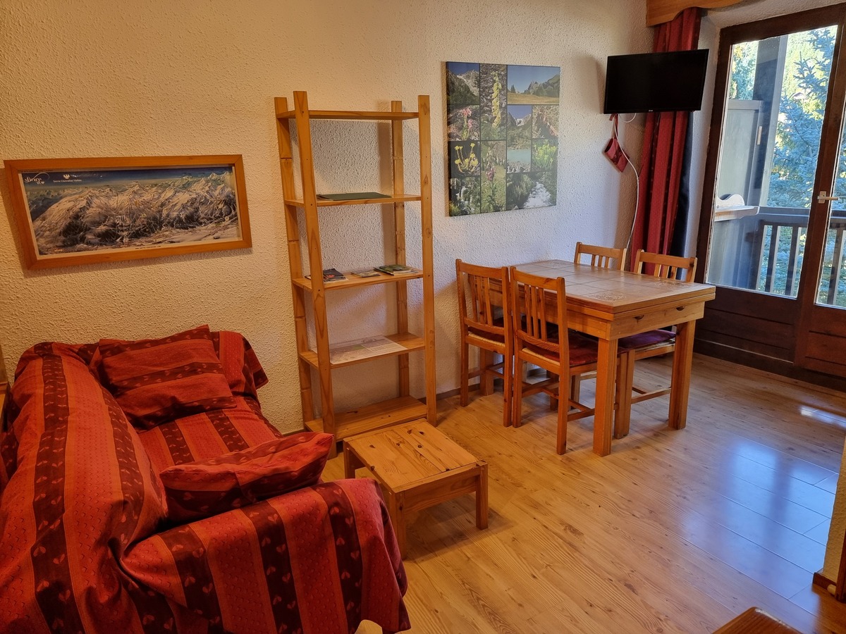Très proche de pistes et des commerces, appartement de type deux pièces avec coin montagne d'une surface d'environ 24 m2, comprenant: