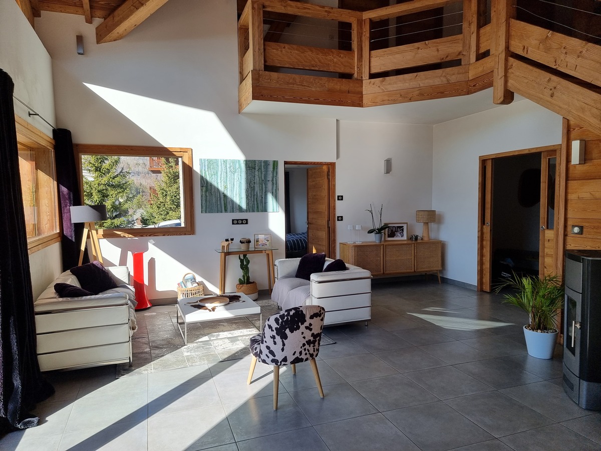 Dans un quartier résidentiel, proche de la nature, beau chalet contemporain d'une surface d'environ 220 m2, bâti sur un terrain de 1163 m2.